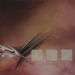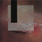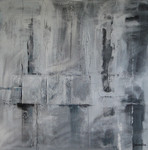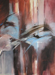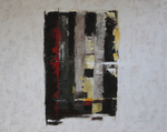 2009modern schilderij, vrij donker met rode accenten. Ik hou van tegenstelling;bv. zwart met fel rood